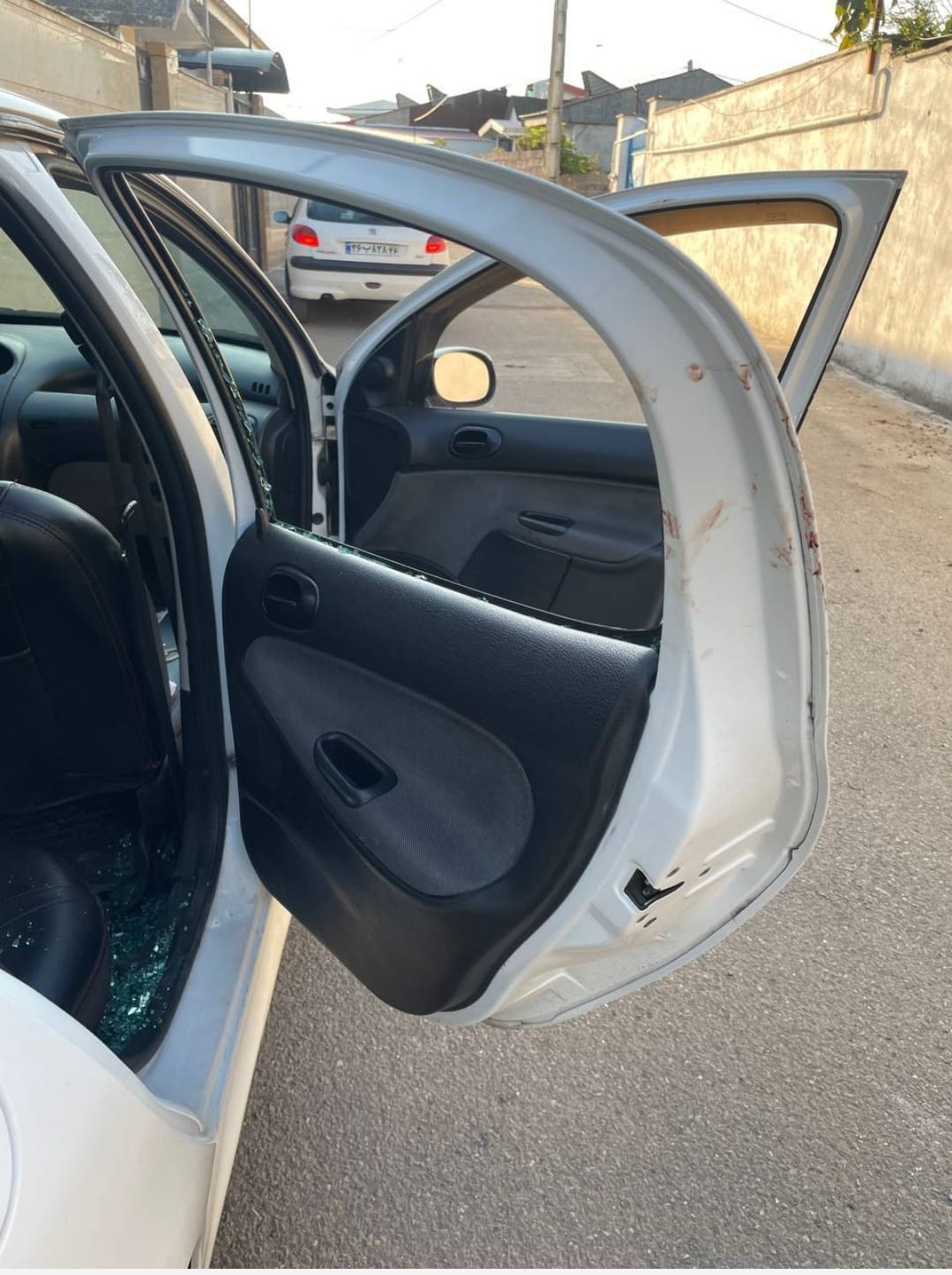 Eventually, as a crowd began to gather, the white car sped away.
