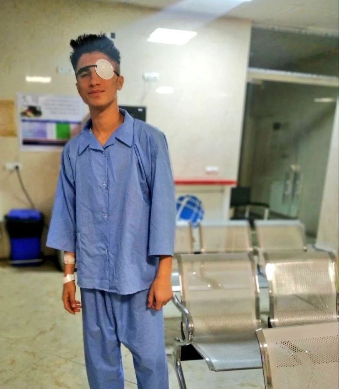 When he got home, Matin’s mother was in shock, asking him why he had gone into the crowds when she had asked for him not to get involved. Eventually, they decided that it would be best for them to go to a hospital in Tabriz. Nikookari Eye Hospital was the nearest hospital specialising in ophthalmology. The drive there took about four hours. After being examined, Matin was told that he would need surgery to attempt to save the eye, and so he was hospitalised for his operation which happed the next day on 17 November. The Surgery did not help Matin regain any vision in his eye, he couldn’t even see light. After multiple visits to the hospital in Tabriz, Matin was referred to an eye specialist in Tehran. Matin and his mother made the journey to Tehran and visited multiple clinics before going to Torfeh Hospital to see if the pellet could be removed from Matin’s eye. Here, Matin was told that the damage to his eye was severe and the most important thing that they could do at this point was try to keep the eye as healthy as possible so that it would not need to be removed.